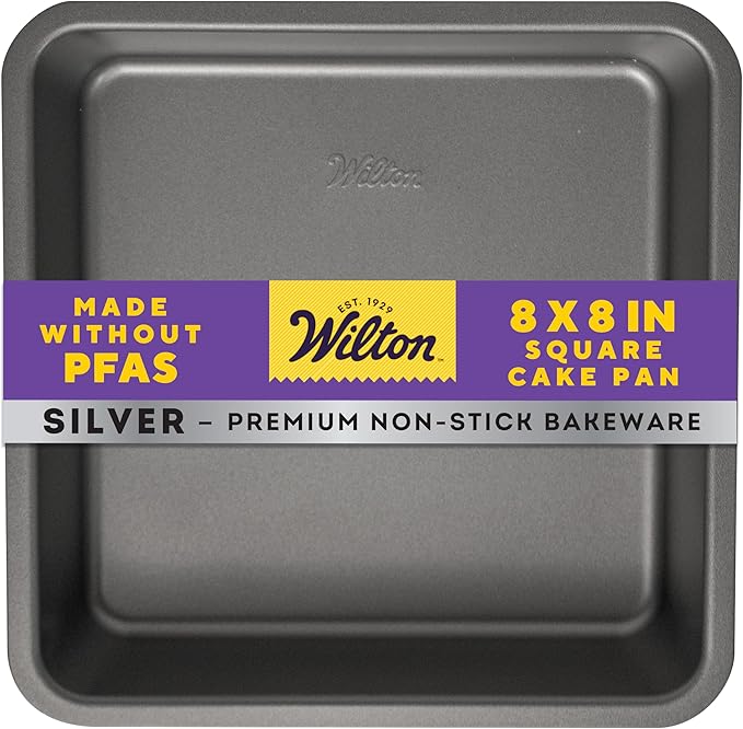 Wilton Silver Non-Stick 8 x 8 Inch Square Brownie Cake Pan, Stainless Steel Bakeware, Made without PFAS, Packaging May Vary