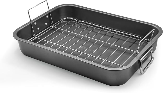 • EASY WASHING: The nonstick coating on our roasting rack with pan makes washing the roast pan a breeze with a soft sponge and warm soapy water and it's dishwasher safe too
