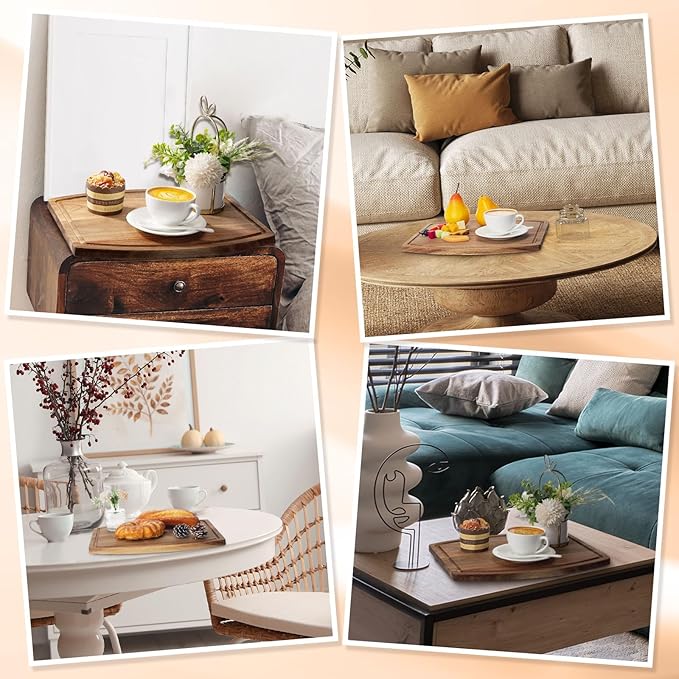 • Easy to Maintain: after use, you only need to wash these wood trays by hand or wipe them with a wet cloth, please do not soak them in the water or put them in the dishwasher; Beyond their practical features, the warm wooden color and beautiful grain of the acacia wood can complement the kitchen and table decor and serve as a kitchen accessory