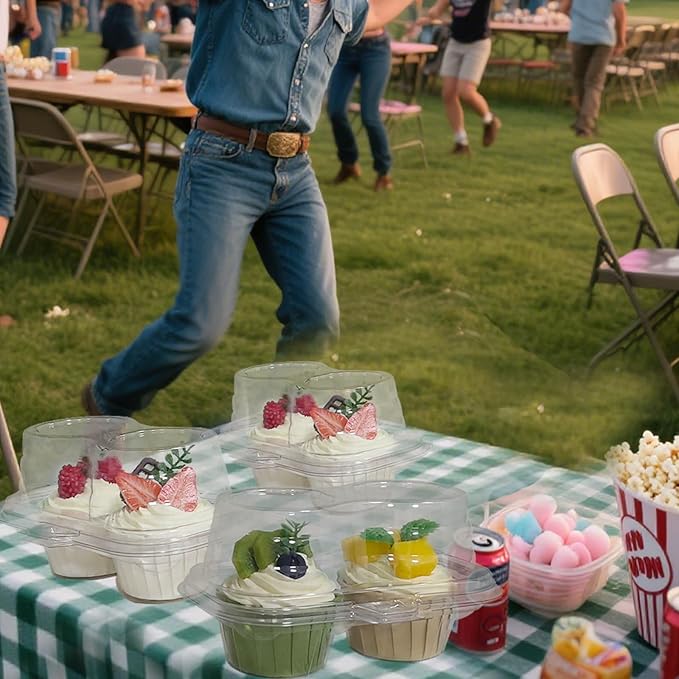 • The Lid of The Cake Container Has Enough Space to Keep Your High Sugar Cream Or Toppings in Their Original State. The Transparent Lid Allows Your Guests to Pick Up The Cupcake And Enjoy it Without Touching The Frosting, Showcasing Beautifully Decorated Cupcakes With High Sugar Frosting. it is Suitable For Using Cupcakes or Pancakes As Gifts or Display Cabinets in Bakeries And Dessert Shops, Weddings, Birthday Parties, Holiday Celebrations, Anniversaries, And More