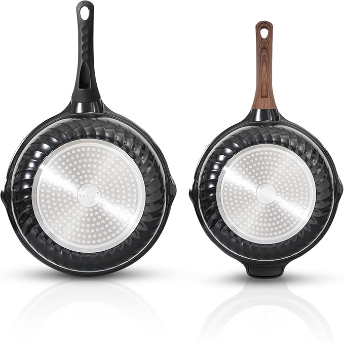 • 【Nonstick Cookware Set】The engineered non-stick interior facilitates food release and simplifies cleanup. Designed for low-oil cooking, the VINCHEF set helps prepare meals while enabling easy maintenance - surfaces can be cleaned by rinsing with warm water and a soft sponge after cooking.