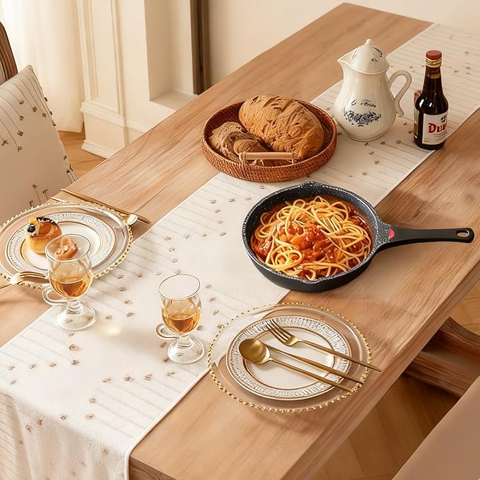 • 【Glass Lid & Heat-Resistant Handle】Features durable tempered glass lid for easy cooking monitoring. The woodgrain Bakelite handle provides ergonomic grip and stays cool during use.