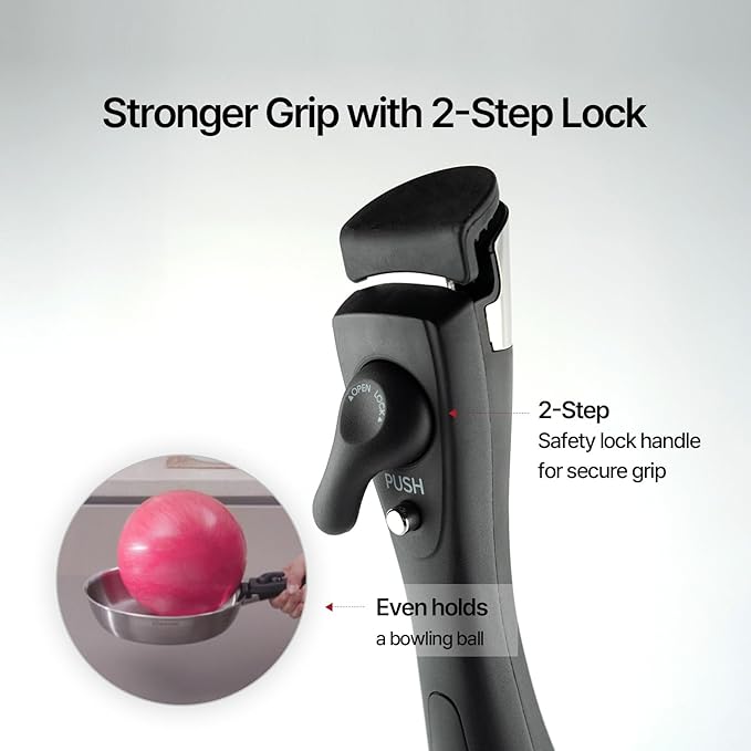 • Detachable removable handle allows safe cooking serving and compact stacking with a secure locking system designed for multiple cookware pieces making storage efficient in compact kitchen spaces