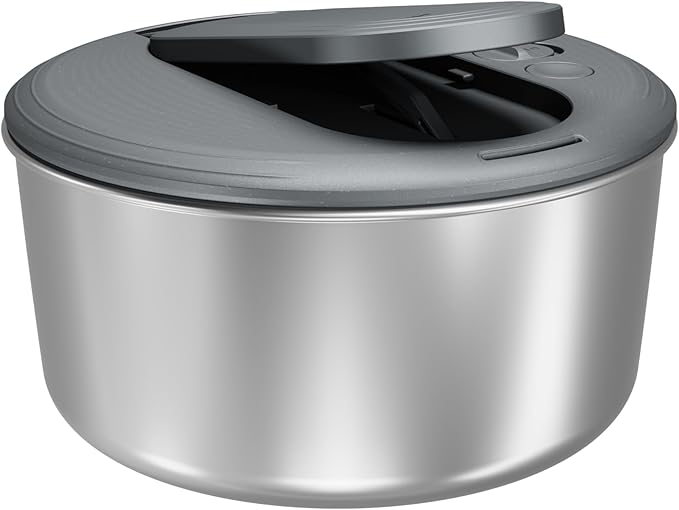 • Sustainable & Compact Salad Dryer: The salad spinner lid is made from sustainable wheat straw material, which reduces plastic use; this fruit cleaning bowl is dishwasher friendly