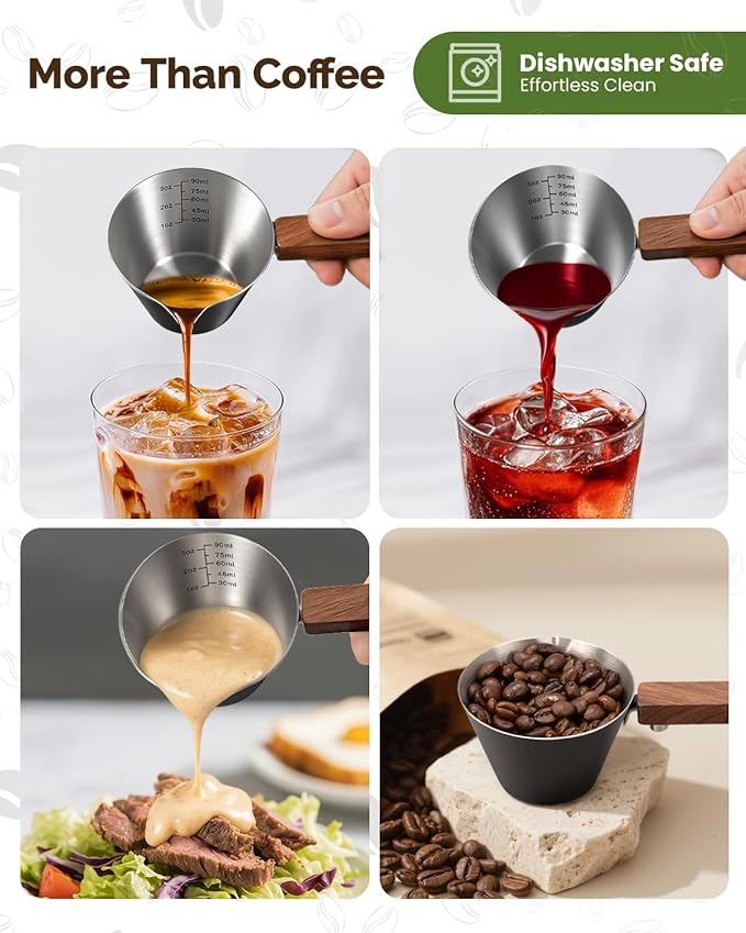 • Versatile Kitchen Tool: This espresso shot cup isn't just for coffee—it also works great for desserts, sauces, and cocktails. You can easily pour and mix with it. It's dishwasher safe for quick and easy cleanup. Perfect for everyday use in and beyond the coffee corner