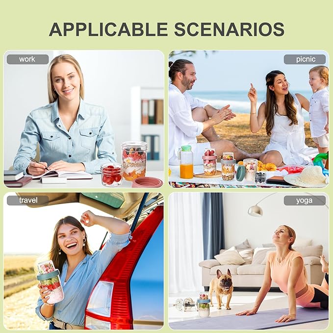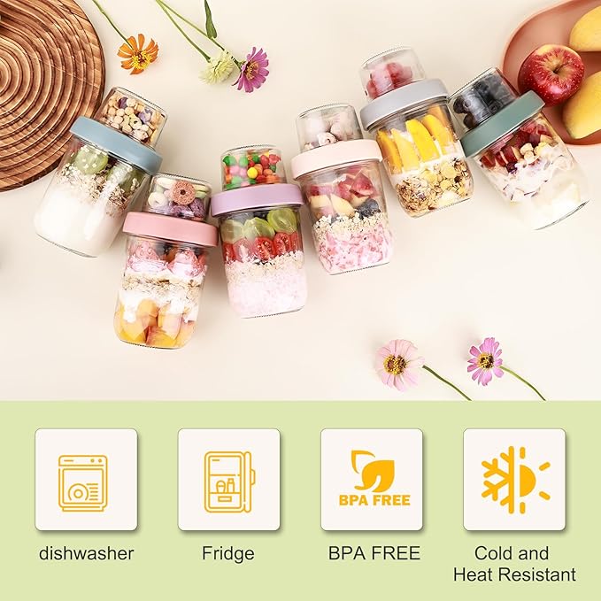 - Versatile Overnight Oats Container with Lid Multi-Use: Ideal as chia pudding jars with lids, yogurt cups, or frozen dessert storage, these versatile overnight oats containers with lids are portable for on-the-go meals at work, gym, or school. The food-grade thick glass ensures durability, while the BPA-free lids and refrigerator safe design let you prep healthy mixes like fruit parfaits or nutty blends effortlessly.
