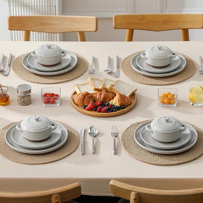 MALACASA Mini Cocotte Set - 12 OZ Ramekins with Lids and Handles, Small Casserole Dishes for Oven, Ceramic Small Baking Dish Set of 4, Microwave & Dishwasher Safe, Khaki Grey, Series TARA