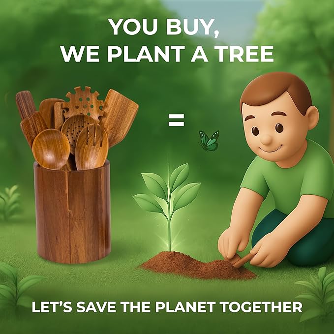 • Crafted from Acacia Wood: Made from dense, long-lasting Acacia wood known for its durability and rich grain, this wooden kitchen utensil set resists moisture and holds up beautifully over time.