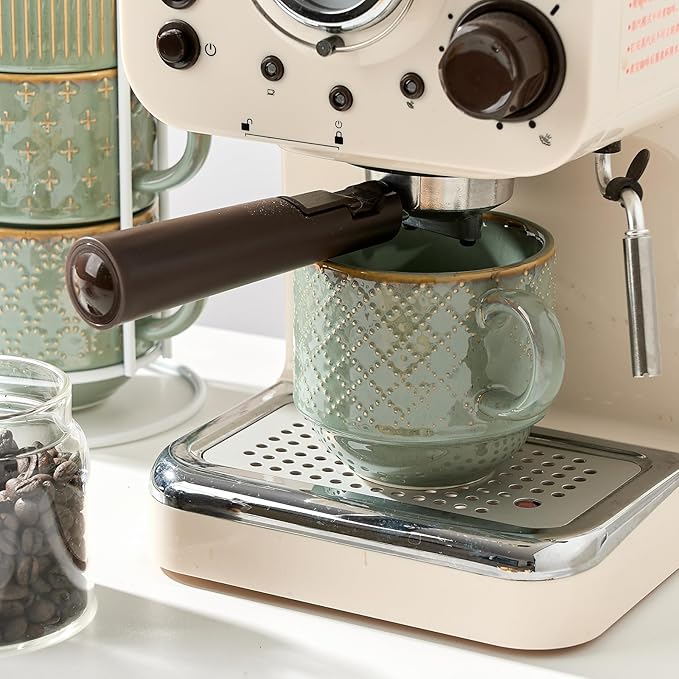 • 【Stunning 4 Different Embossed design】Each coffee mug set has a different emboss-texture and finished in a dots, lines, florets and rhombus grids, and green interior. This coffee mugs set of 4 are designed to be mixed and matched. Artistic shape make an amazing presentation on your table.
