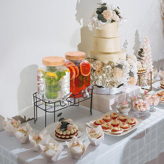2 Pack 1 Gallon Glass Drink Dispenser with Bamboo Lid, Beverage Dispenser with Stand, Drink Machine for Lemonade, Iced Drinks Kombucha Dispenser