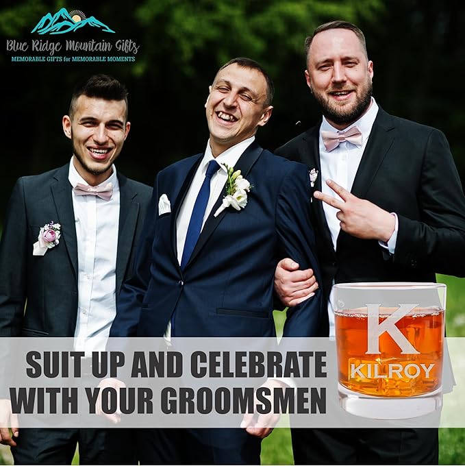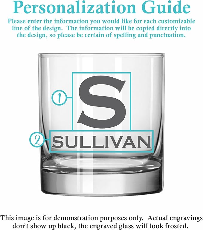 Blue Ridge Mountain Gifts - Custom Engraved Whiskey Glass - 11 oz Personalized Tumbler with Modern Monogram & Last Name - Classic Barware for Weddings, Groomsmen, Anniversaries & Father’s Day (2)