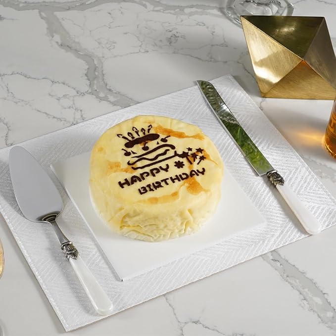 2-piece Cake Knife and Serve Set, Fancy Hand Craft Italian Design, Vintage Pie Knife Server Set with Handle, Cake Cutter Set (White)