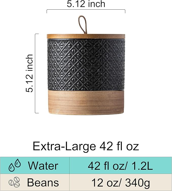 • Ultra-Airtight Wooden Lid: The wooden lid means business for freshness, with a tight gasket locking out air, moisture, and odors to keep beans crisp and grounds flavorful