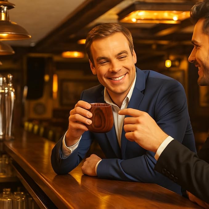 • Perfect 6 oz Size for Tasting: Crafted with the ideal 6 oz capacity, this wooden whiskey glass concentrates the aroma while keeping the pour refined and manageable. Slim, easy to hold, and perfect for a relaxed sipping experience