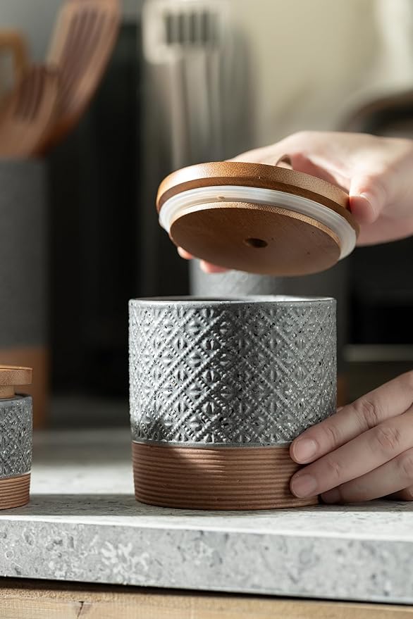 • Farmhouse Embossed Details: The intricate embossed patterns make this ceramic coffee canister a stylish kitchen addition—more than coffee bean storage, it's a tasteful decor