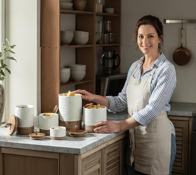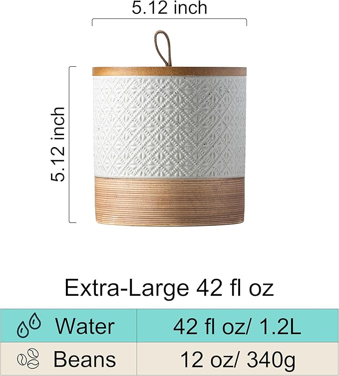 • Farmhouse Embossed Details: The intricate embossed patterns make this ceramic coffee canister a stylish kitchen addition—more than coffee bean storage, it's a tasteful decor