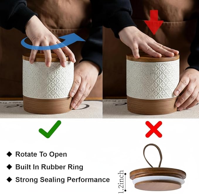 • Ultra-Tight Wooden Lid: The wooden lid with a strong rubber gasket creates an unbeatable airtight seal, keeping air, moisture far away from your coffee beans and ground coffee, locking in freshness for longer—making it an essential part of your Coffee Bar Accessories