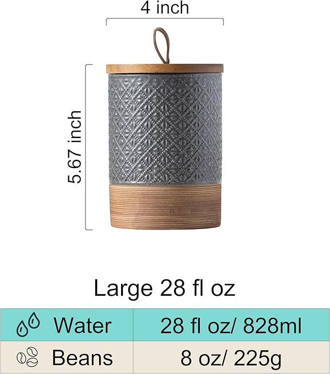 • High-Quality Ceramic Make: This 28oz ceramic coffee canister is crafted from premium ceramic, boasting lovely embossed patterns and easy to clean—dishwasher-safe for lazy cleanup days