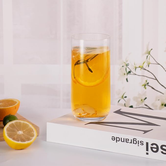 • 【Meticulous Design】The highball glass with a broad and flat base ensures stability and prevents tipping. The wide rim allows smooth sipping, easy addition of ice, fruit slices (e.g., lemon, strawberry), or straws, and effortless stirring. The full-bodied contour fits comfortably in the palm for a secure and pleasant grip.