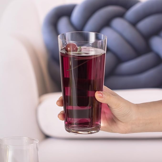 • 【Meticulous Design】The highball glass with a broad and flat base ensures stability and prevents tipping. The wide rim allows smooth sipping, easy addition of ice, fruit slices (e.g., lemon, strawberry), or straws, and effortless stirring. The full-bodied contour fits comfortably in the palm for a secure and pleasant grip.