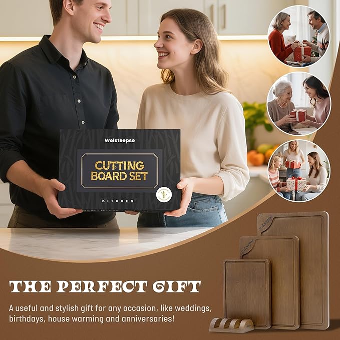 - Sturdy Cutting Boards - Experience unparalleled durability with Welsteepse’s cutting board set, which uses a cross-laminated technique. Each layer of bamboo is precisely interlocked to create a robust structure that resists warping and cracking.
