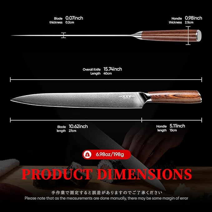 • 10 INCH SUSHI KNIFE-Our knives come in beautiful gift boxes. It is a perfect gift choice.Perfect for both cooking enthusiasts and professional chefs