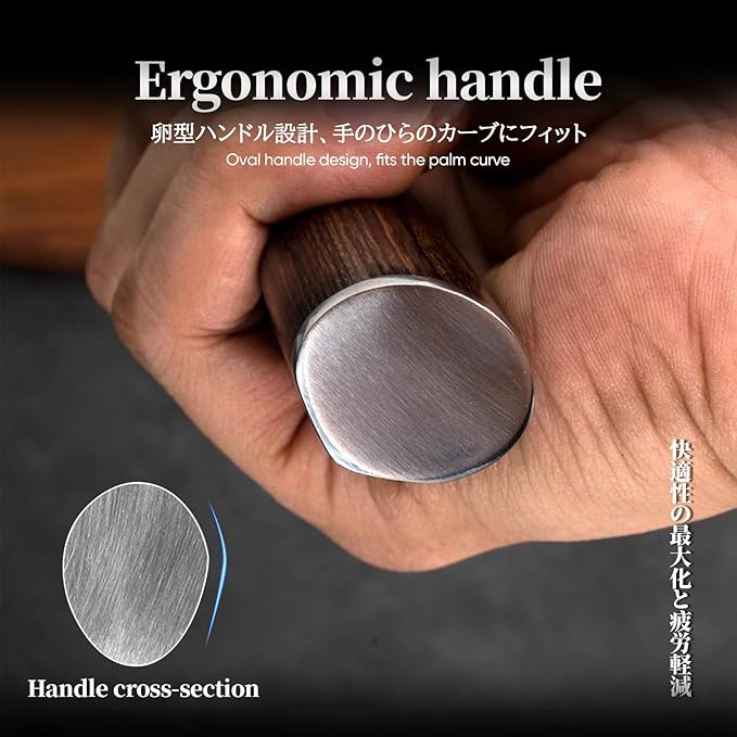 • COMFORTABLE HANDLE FOR EASY GRIP-kitchen knife adopts sandalwood handle design,which provides it with comfort, strength and stability. Even after long-time use, it can ensure you will not feel tired when cutting food