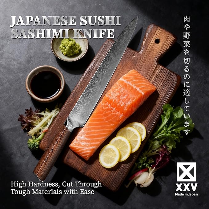 XXV 10 Inch Sushi Knife, High Carbon Japanese Steel Sashimi Knife, Japanese Knives with Sandalwood Handle for Fish Filleting & Slicing