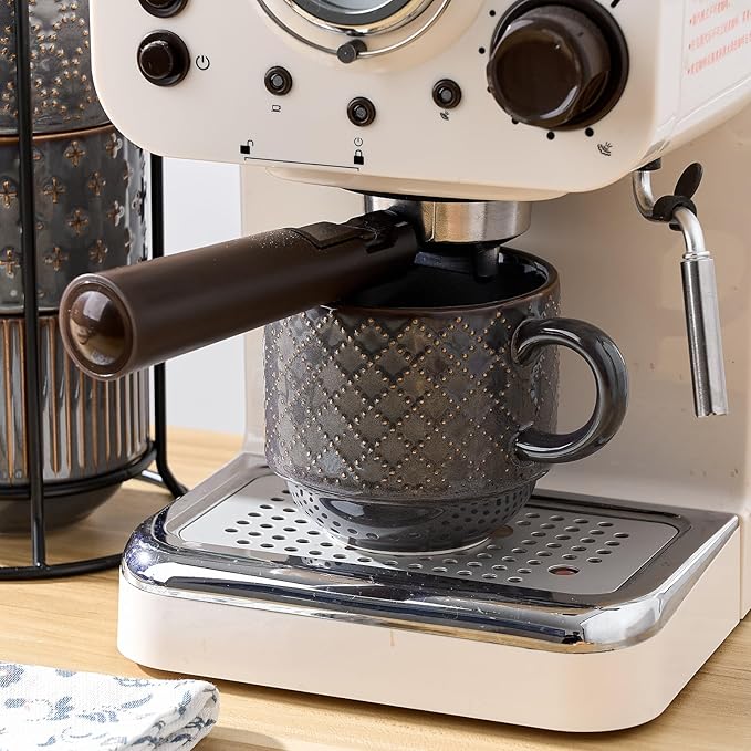 • 【Stunning 4 Different Embossed design】Each coffee mug set has a different emboss-texture and finished in a dots, lines, florets and rhombus grids, and green interior. This coffee mugs set of 4 are designed to be mixed and matched. Artistic shape make an amazing presentation on your table.