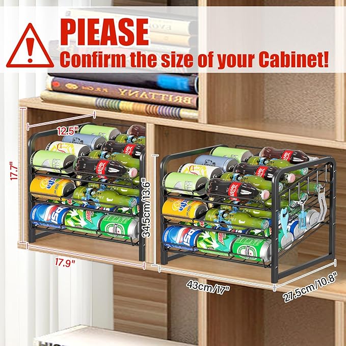 • 【Stackable Design】The brackets of this can rack are all stacked. The stackable design maximizes the storage space, and you can also use it alone. Installing multiple can racks can increase storage space, make the cabinet more tidy, and save space.
