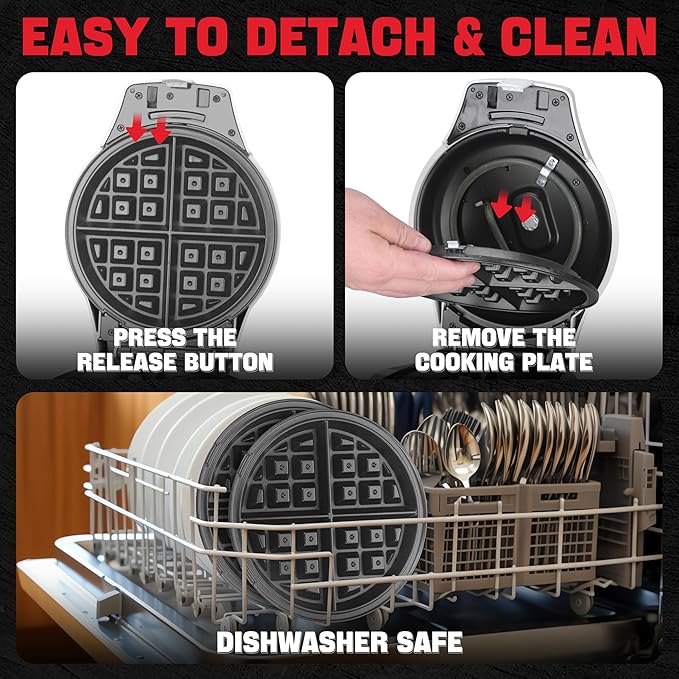 • [Compact & User-Friendly Design]: This Mini Waffle Maker with removable plates is a must-have for first apartments, small kitchens, college dorms, or RV/camper travels. Its non-stick cooking plates are removable and dishwasher-safe, making cleanup a breeze.