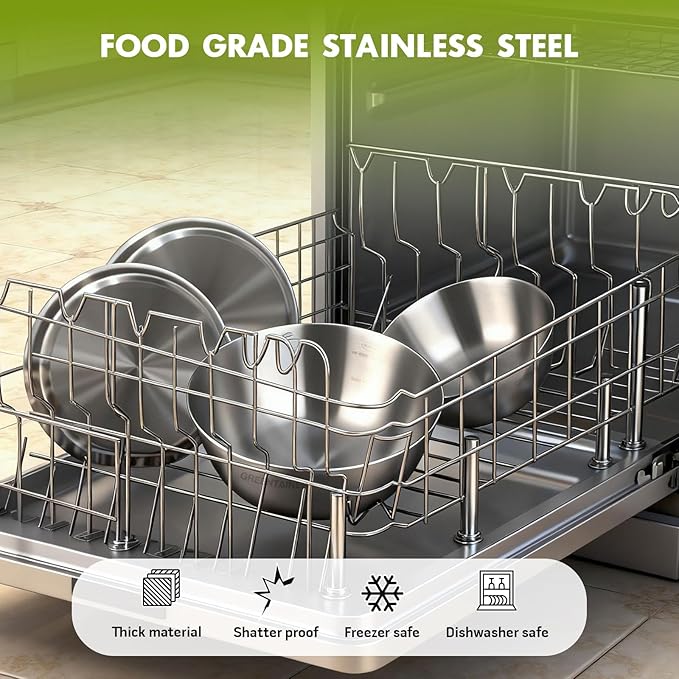 • 【Effortless Cleanup】The stainless steel mixing bowls' smooth and polished surface prevents food from sticking, making washing a breeze. They are dishwasher safe, and also allows for a quick, simple rinse with soap and water