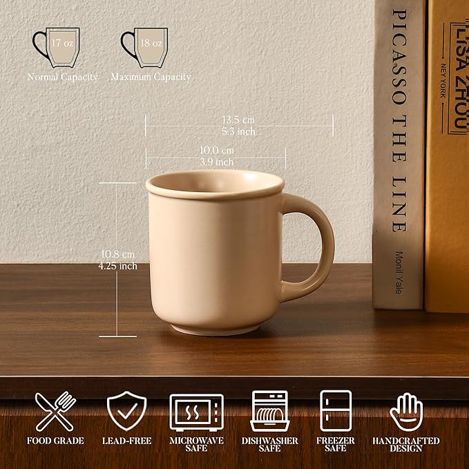 GZG 18 oz Coffee Mugs Set of 4, Modern Ceramic Coffee Cups Set with Handle, Large Coffee Mugs for Tea, Latte, Milk, Cocoa, Rustic Matte Glaze, Microwave & Dishwasher Safe(Warm Sand)