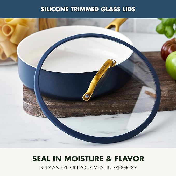 • DURABLE DOMED GLASS LIDS: The tempered glass lids feature a silicone rim to lock in heat and moisture so you can watch all the action on the outside.