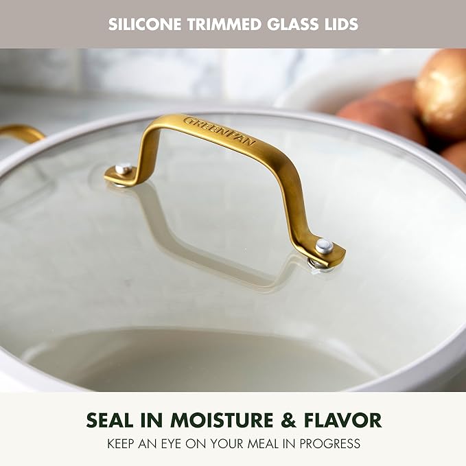 • DURABLE DOMED GLASS LIDS: The tempered glass lids feature a silicone rim to lock in heat and moisture so you can watch all the action on the outside.