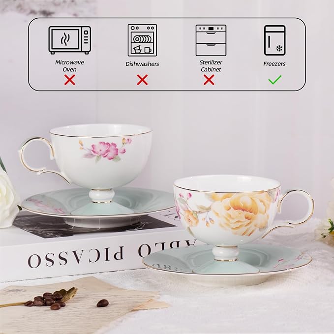 • Thoughtful Gift for Tea Enthusiasts Comes as a set of 2 cups and saucers, making it a charming gift for birthdays, Mother’s Day, or anyone who appreciates elegant tableware.