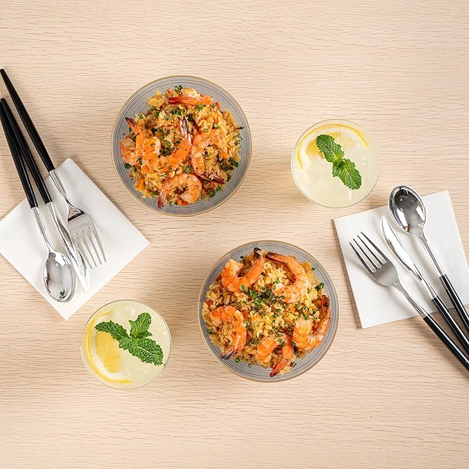 • CONVENIENT BULK PACK: This set includes 100 disposable bowls, providing ample supply for parties, weddings, or any event where you want to impress with elegant disposable plates.