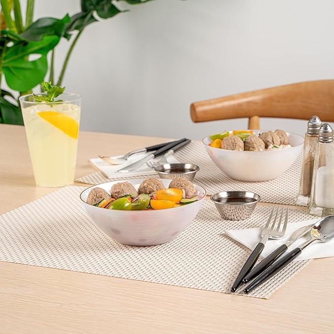 • CONVENIENT BULK PACK: This set includes 100 disposable bowls, providing ample supply for parties, weddings, or any event where you want to impress with elegant disposable plates.