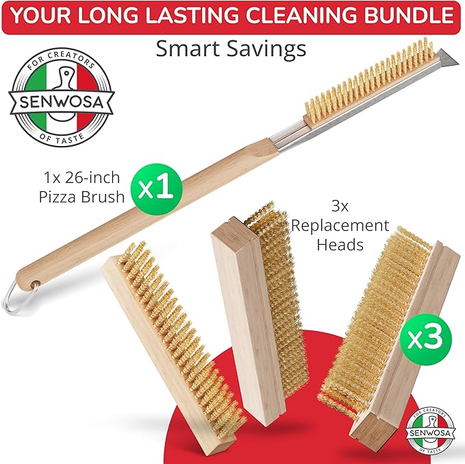 • Complete 2-Box Brush Bundle: This all-in-one bundle delivers our 26-inch brush with an integrated scraper and one spare head in Box 1, plus a 2-pack of replacement heads in Box 2. You get three total spares to ensure your pizza stone remains a perfect canvas for years to come.