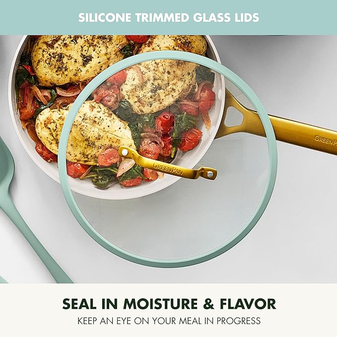 • DURABLE DOMED GLASS LIDS: The tempered glass lids feature a silicone rim to lock in heat and moisture so you can watch all the action on the outside.