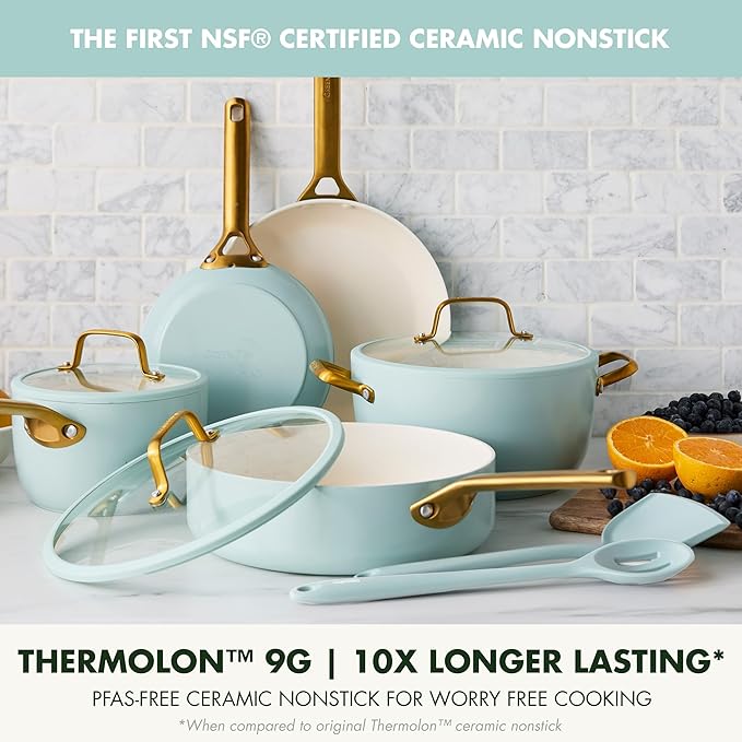 • 10X LONGER LASTING*: Thermolon 9G is the latest evolution in toxin-free cooking. It delivers supercharged performance, remarkable nonstick release, and next-level scratch resistance. The first NSF Certified ceramic nonstick, it's free of PFAS for worry-free cooking.
