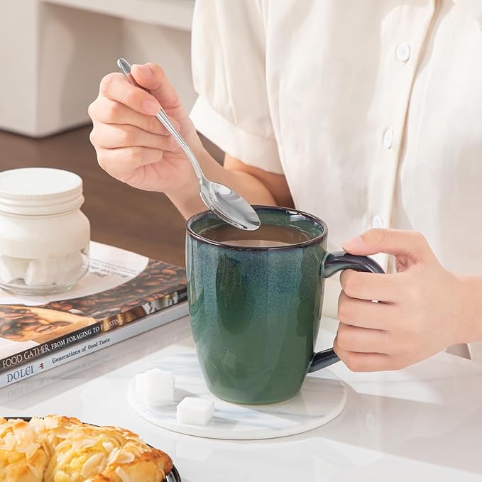 vancasso STARRY Ceramic Coffee Mug Set of 6, 16 Oz Tea Cups with Handle for Latte, Tea, Cappuccino, Milk, Cocoa, Microwave&Dishwasher Safe, Green