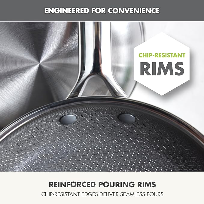 • HYBRID THERMOBOND TECHNOLOGY: The next level of PFAS-free performance, combining cutting-edge diamond-infused ceramic nonstick, stainless steel etched pattern, and a nonstick boost layer for a seamless cooking experience.
