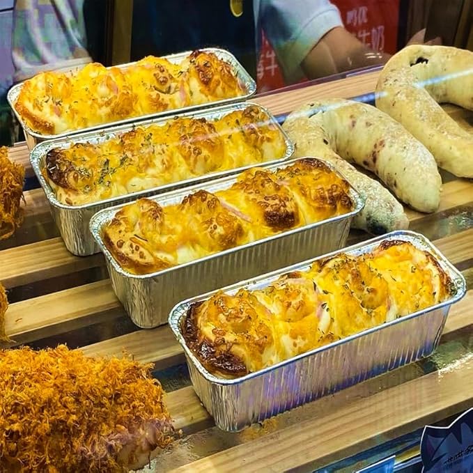 • HEAVY DUTY ALUMINUM MADE: The disposable loaf pans are made of durable aluminum foil, which can evenly distribute heat and retain its shape out of the oven hot temperature! This pan can support heavy bread without bending, breaking, or sagging.