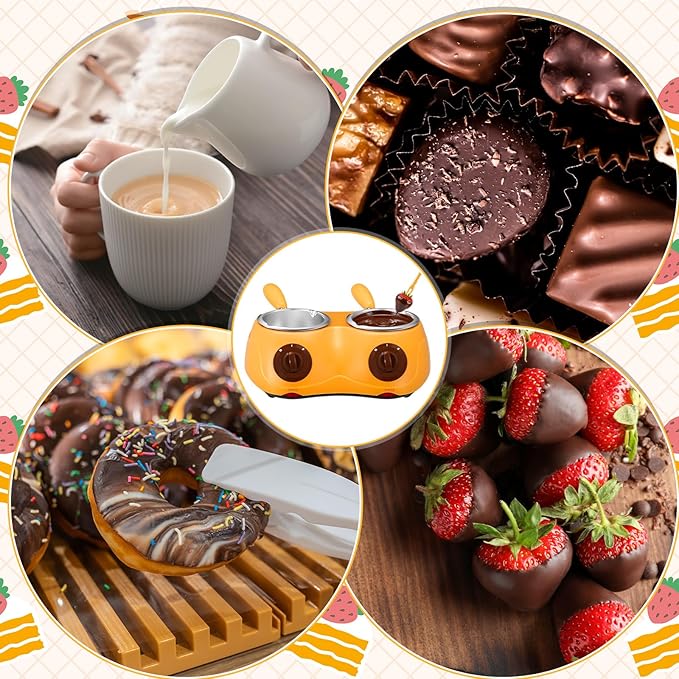 • DIY Chocolate Experience: elevate your and your kids'chocolate making skills with the chocolate melting machine's DIY features; Experiment with different flavors, colors, and decorations using the included DIY spoons, fondue fork, fork, and various other accessories; Impress your friends and family with your homemade creations