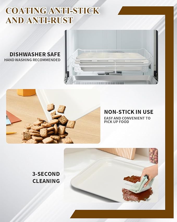 • NONSTICK BAKING SHEETS SET– Durable carbon steel construction with a safe, scratch-resistant nonstick coating for effortless food release and easy cleanup—no oil or butter needed, BPA/PFOS/PFOA-free
