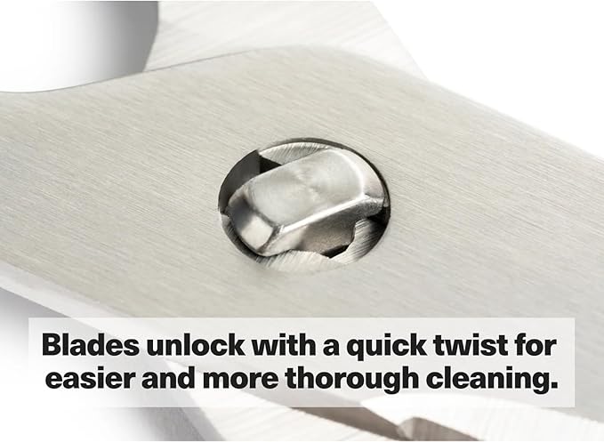 • Effortless Cleanup: The genius lies in the details. Our kitchen shears effortlessly come apart, allowing for meticulous cleaning, reaching every nook and cranny which helps elimiate cross contamination and other foodborn illnesses.