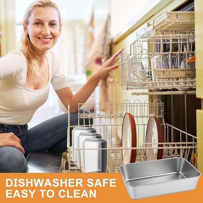 • 【Premium Stainless Steel Material】Crafted from food-grade stainless steel, these bread pans for baking are rust-resistant, warp-proof, and designed for long-lasting use. Unlike aluminum or coated pans, they won’t leach chemicals or retain odors. The robust construction resists rust, corrosion, and warping even after prolonged oven use at high temperatures.