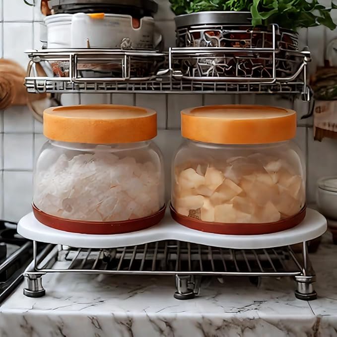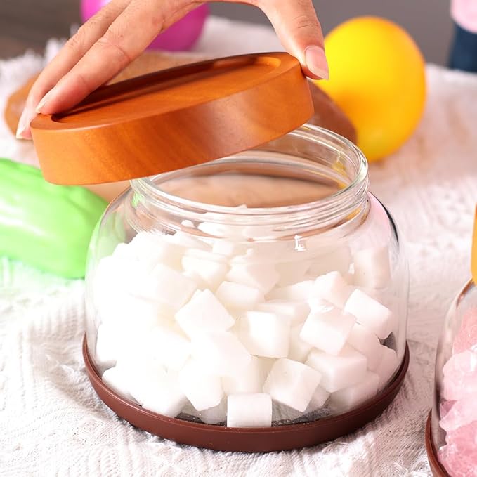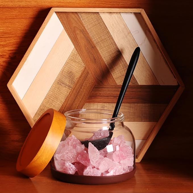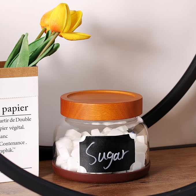 • 【Elegant Kitchen Decor】** Vibrant rubberwood lid + crystal-clear borosilicate glass creates a chic display. Includes 2 black spoons, labels & 1 marker for instant use.