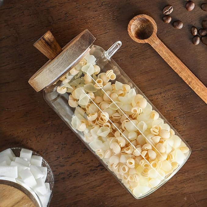 • Ideal Size for Daily Use: With dimensions of 3.54" x 7.87" (lid not included), this 34FL Oz glass jar offers ample capacity while remaining compact enough for convenient storage and portability. The wooden handle on the lid ensures comfortable and effortless opening